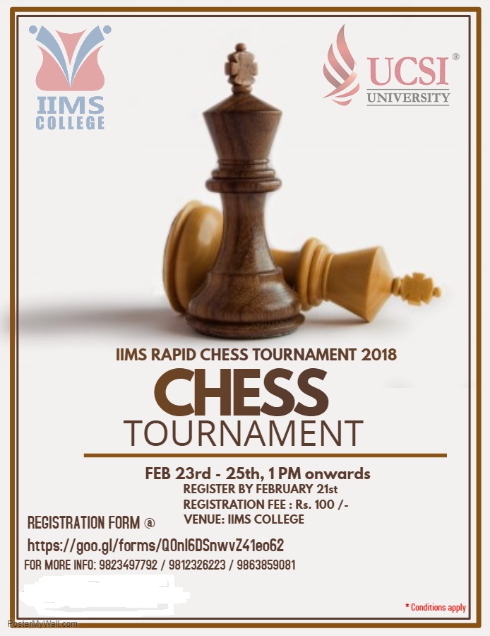 BIT 6th sem students are hosting Chess Tournament. Interested participant are requested to fill/submit registration form via this link: https://goo.gl/forms/QOnl6DSnwvZ41eo62